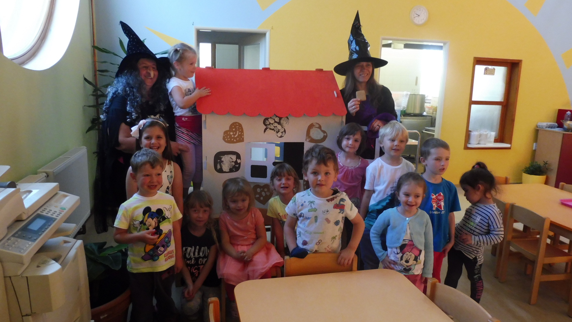 Tak i do naší školky dopoledne zalétly na koštěti dvě čarodejnice. Děti si s chaloupky mohly uloupnout a sníst ke svačince výtečný perníček.