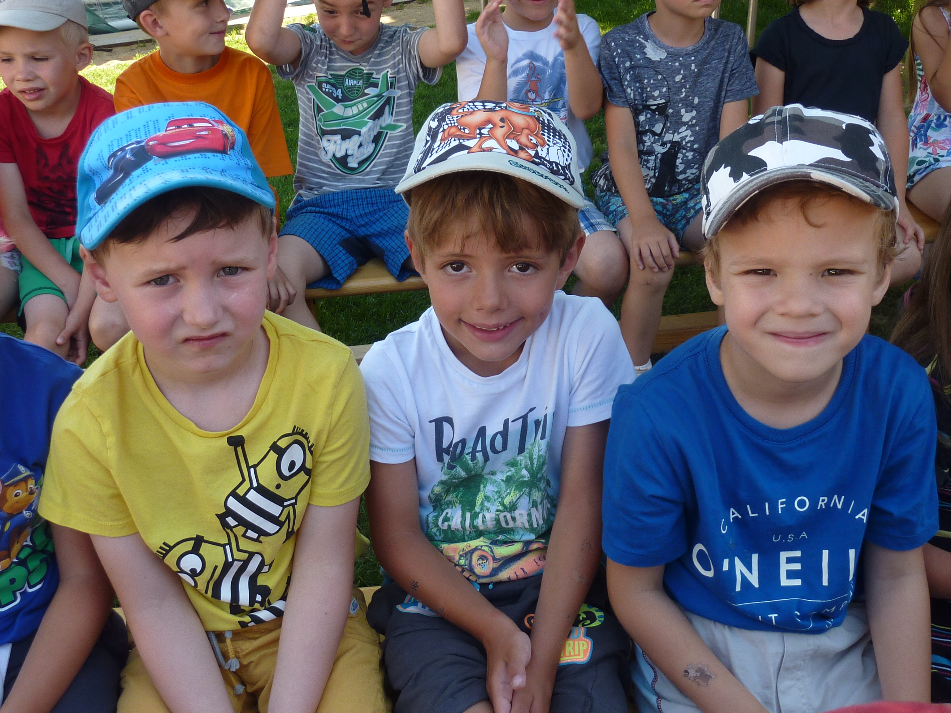 Dnes si děti náramně užily vystoupení Roberta a jeho kouzelnických kousků s kloboukem, kartami, kruhy a dalšími pomůckami. Nakonec jsme si všichni společně zatancovali. Děti dostaly za odměnu nafouknuté balónky, které stočil do různých tvarů dle přání dětí – a tak si děti odnášely do šatny pejsky, žirafy, meče…. Celé představení proběhlo na zahradě školky.